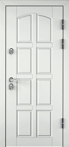 Железная входная дверь в частный дом софт белого цвета №1 — это стильное и практичное решение для вашего дома. Она идеально впишется в любой интерьер благодаря элегантному белому цвету и высококачественной отделке. Внешняя поверхность двери покрыта порошковым термонапылением, которое придает ей устойчивость к внешним воздействиям и повреждениям. Внутреннее покрытие выполнено из плиты МДФ, что добавляет прочности и долговечности. Металлическая конструкция с листом толщиной 2 мм и усиленными ребрами жесткости на основе профильных труб 40х25 мм гарантирует надежность и безопасность. Два контура резинового уплотнителя обеспечивают отличную герметичность. Дверь оснащена двумя замками с тремя ригелями, что повышает уровень защиты. Также предусмотрена возможность добавления зеркала, стеклопакета и кованых элементов для более индивидуального внешнего вида. Железная входная дверь в частный дом софт белого цвета №1 от производителя: быстрое изготовление и монтаж в Селятино, индивидуальные размеры, широкий выбор материалов и фурнитуры, официальная гарантия до 10 лет.
