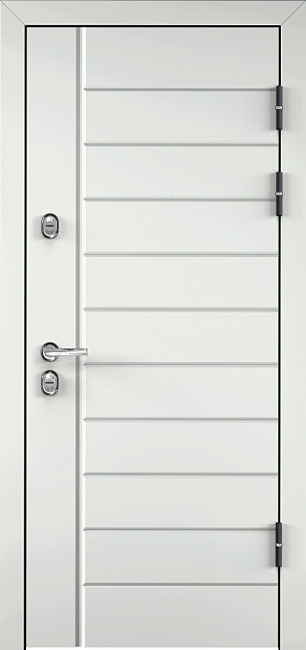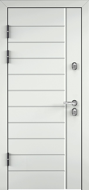 Эта белоснежная входная дверь с линиями №30 станет стильным и надежным элементом для любого интерьера. Благодаря отделке из панелей МДФ с ПВХ-покрытием, дверь выглядит элегантно и обладает высокой устойчивостью к внешним повреждениям. Внешний вид дверного полотна дополнен утонченными линиями, что придает ей современный, лаконичный вид. Прочный каркас из профильных труб 50х25 мм и лист металла толщиной 2 мм обеспечивают отличную защиту и долгий срок службы. Два контура резинового уплотнителя эффективно защищают от шума и холода, создавая комфорт в помещении. Замки Просам и Мосрентген с тремя ригелями гарантируют надежную безопасность. Дополнительно можно заказать зеркала, стеклопакеты и кованые элементы, что делает дверь универсальной для разных дизайнерских решений. Квартирная дверь входная белоснежного цвета с линиями №30 от производителя: быстрое изготовление и монтаж в Селятино, индивидуальные размеры, широкий выбор материалов и фурнитуры, официальная гарантия до 10 лет.