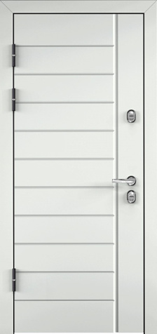 Белоснежная дверь скандинавского дизайна №9 привнесет в ваш интерьер светлый и стильный акцент. Внешняя отделка с порошковым напылением обеспечивает двери стойкость к атмосферным воздействиям, предотвращая потерю цвета и износа. Внутреннее покрытие из плиты МДФ добавляет теплоту и уюта, сохраняя свою прочность. Конструкция из профильной трубы 50х25 мм с листом металла толщиной 2 мм и ребрами жесткости из профильных труб 40х25 мм гарантирует долговечность и защиту. Резиновый уплотнитель с двумя контурами предотвращает проникновение холодного воздуха и шума. Дверь оснащена надежными замками "Просам" и "Мосрентген", что обеспечивает безопасность вашего дома. Возможность комбинировать отделку с зеркалом, стеклопакетами или коваными элементами позволяет сделать дверное полотно уникальным и максимально подходящим под ваш стиль. Белоснежная дверь скандинавского дизайна №9 от производителя: быстрое изготовление и монтаж в Селятино, индивидуальные размеры, широкий выбор материалов и фурнитуры, официальная гарантия до 10 лет.
