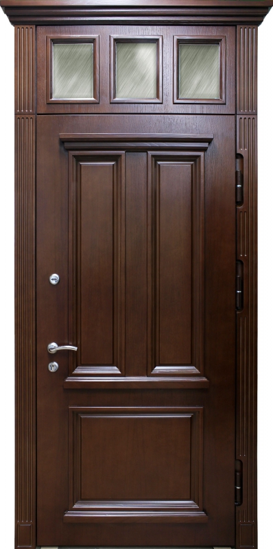 Дверь с сувальдным замком и фрамугой №34 идеально сочетает в себе стиль и надежность. Панель из натурального дерева, использованная как для внешней, так и для внутренней отделки, придает двери благородный и элегантный вид, делая её отличным выбором для помещений с классическим или современным интерьером. Каркас двери выполнен из профильной трубы 50х25 мм и усилен ребрами жесткости, что гарантирует прочность конструкции. Замки от производителей "Просам" и "Мосрентген" с тремя ригелями обеспечивают высокий уровень безопасности. Дверь оснащена уплотнителями с двумя контурами, что гарантирует отличную герметичность, а возможность замены замков и добавления кованых элементов делает её адаптируемой под любые требования. Кроме того, дверь можно дополнить зеркалом, стеклопакетом или видеодомофоном для еще большего комфорта. Входная дверь с сувальдным замком и фрамугой №34 от производителя: быстрое изготовление и монтаж в Селятино, индивидуальные размеры, широкий выбор материалов и фурнитуры, официальная гарантия до 10 лет.