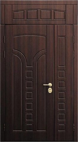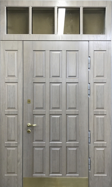 Входная дверь с остекленной фрамугой №1 привлекает внимание благодаря стильному и современному дизайну. Ее внешняя и внутренняя отделка из МДФ выглядит элегантно и долговечно, а также устойчива к механическим повреждениям, таким как царапины и вмятины. Каркас из профильной трубы и металл толщиной 2 мм гарантируют прочность и надежность. Наличие фрамуги позволяет создать эффектное освещение и визуально расширяет пространство, при этом сохранение теплоизоляции обеспечено двумя контурами резинового уплотнителя. Блокираторы и качественные замки, такие как Просам и Мосрентген, надежно защищают от взлома. Возможность дополнить дверь стеклопакетом, зеркалом или коваными элементами делает эту модель еще более универсальной для различных интерьеров. Входная дверь с остекленной фрамугой №1 от производителя: быстрое изготовление и монтаж в Селятино, индивидуальные размеры, широкий выбор материалов и фурнитуры, официальная гарантия до 10 лет.