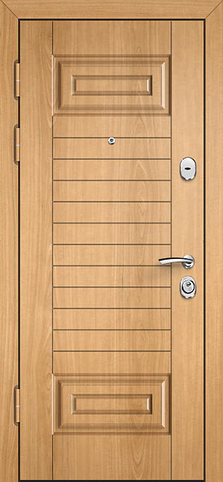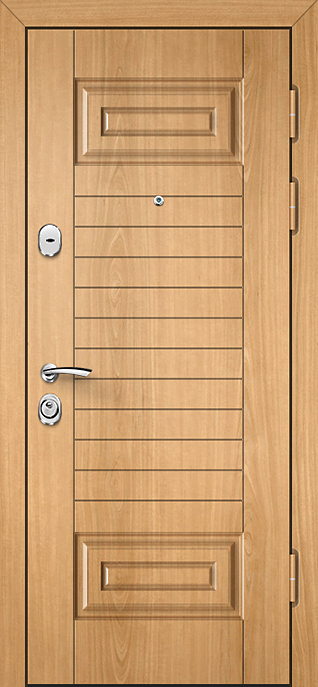 Металлическая конструкция с листом стали толщиной 2 мм и жёстким каркасом из профильной трубы формирует основу, которая не подведёт ни в квартире, ни в офисе. Два контура резинового уплотнителя делают закрывание плотным, уменьшая шум и сквозняки, а наличие блокираторов повышает уровень безопасности. Внешняя и внутренняя отделка выполнена из МДФ ПВХ — материал прочный, устойчивый к мелким повреждениям и сохраняющий аккуратный вид при ежедневной эксплуатации. В центре внимания здесь Железная дверь в квартиру №78, сочетающая надёжность стали и декоративные возможности панелей, которые можно комбинировать по вкусу. Комплект замков представлен сувальдным Просам и цилиндровым Мосрентген, при этом доступна замена на более сложные механизмы вплоть до биометрических систем. Конструкцию легко дополнить зеркалом, стеклопакетом, коваными элементами или видеодомофоном, превратив строгую дверь в удобный и технологичный элемент современного жилья. Железная дверь в квартиру №78 от производителя: быстрое изготовление и монтаж в Селятино, индивидуальные размеры, широкий выбор материалов и фурнитуры, официальная гарантия до 10 лет.