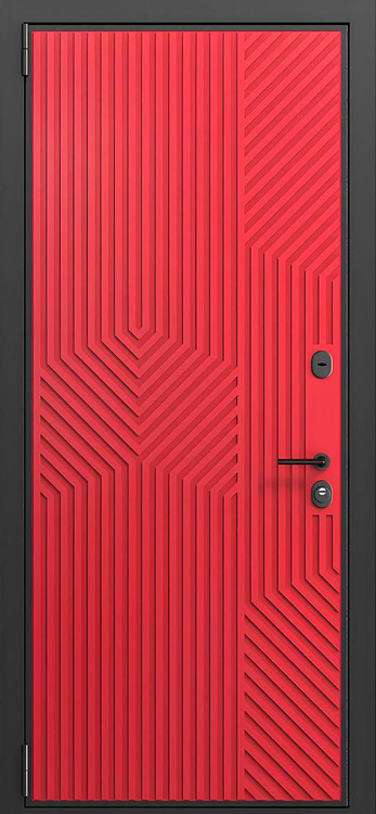 Красная входная дверь в квартиру №559 создана для тех, кто не боится выделяться и хочет подчеркнуть характер своего дома или офиса уже с порога. Яркий оттенок делает её выразительным акцентом, а строгая стальная основа из профильной трубы с листом металла толщиной 2 мм обеспечивает надежную защиту. Конструкция усилена ребрами жесткости и блокираторами, благодаря чему дверь устойчива к нагрузкам и сохраняет форму при длительной эксплуатации. Внешняя и внутренняя отделка выполнена из накладок МДФ, которые придают полотну аккуратный вид и защищают от мелких механических повреждений. Два контура резинового уплотнения делают закрывание мягким и плотным, уменьшая проникновение шума и сквозняков. Такая дверь одинаково хорошо смотрится в квартире, частном доме или офисном пространстве, сочетая смелый дизайн с надежностью металлической конструкции. Красная входная дверь в квартиру №559 от производителя: быстрое изготовление и монтаж в Селятино, индивидуальные размеры, широкий выбор материалов и фурнитуры, официальная гарантия до 10 лет.