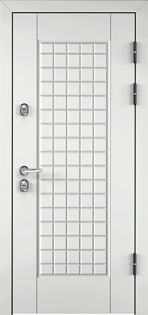 Белый цвет всегда символизирует чистоту и лёгкость, а на входной двери он ещё и подчёркивает современный вкус владельца. МДФ-плита с аккуратным вырезом «плитка» создаёт интересный декоративный эффект, благодаря которому строгая поверхность получает стильный рельеф и выглядит солидно как в частном доме, так и в офисном пространстве или городской квартире. Белая входная дверь МДФ с вырезом "плитка" в центре №532 изготовлена на основе прочного каркаса из профильной трубы с усиленными рёбрами жёсткости и металлическим листом толщиной 2 мм. Конструкция оснащена двумя замками российского производства — сувальдным Просам и цилиндровым Мосрентген, что обеспечивает надёжную защиту. При желании её можно дополнить зеркалом, коваными элементами, стеклопакетом или даже умными биометрическими замками. Такая дверь не только надёжна, но и способна стать выразительной деталью экстерьера или интерьера. Белая входная дверь МДФ с вырезом "плитка" в центре №532 от производителя: быстрое изготовление и монтаж в Селятино, индивидуальные размеры, широкий выбор материалов и фурнитуры, официальная гарантия до 10 лет.