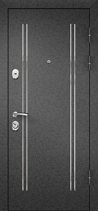 Дверь металлическая в порошке №59 — надежное решение для квартир, офисов и подъездов, где требуется прочная конструкция и аккуратный внешний вид. Снаружи используется молотковое напыление, которое не боится механических повреждений и долго сохраняет насыщенный цвет, а внутренняя поверхность отделана ламинатом, создающим ощущение уюта и подчеркивающим практичность модели. Каркас собран из профильной трубы 50х25 мм, усилен ребрами жесткости и листом стали толщиной 2 мм, что придает двери устойчивость к силовым нагрузкам. Дополнительную защиту обеспечивают два замка: верхний сувальдный «Просам» и нижний цилиндровый «Мосрентген», оба с тремя ригелями. Два контура резинового уплотнения помогают справляться со сквозняками, а при желании дверь можно укомплектовать шумо- и теплоизоляцией. Модель №59 легко адаптируется под любые требования: возможна комбинация отделок, установка зеркала, стеклопакета или декоративной ковки. Дверь металлическая в порошке №59 от производителя: быстрое изготовление и монтаж в Селятино, индивидуальные размеры, широкий выбор материалов и фурнитуры, официальная гарантия до 10 лет.