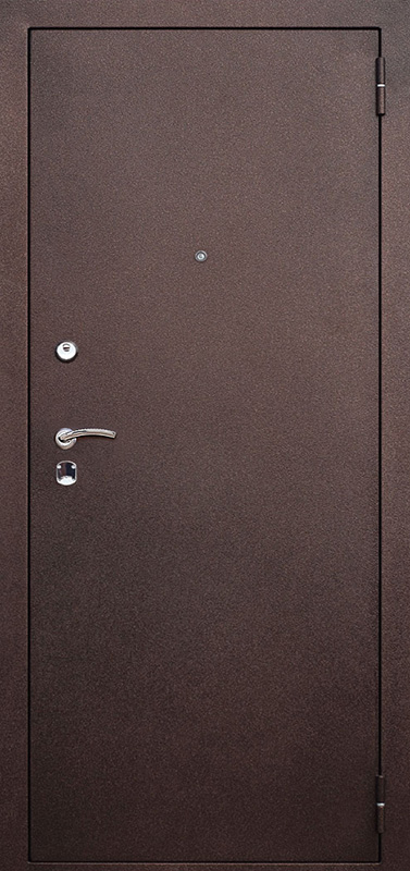 Входная дверь с напылением №82 создана для тех, кто ценит практичность и долговечность без лишних изысков. Она одинаково уверенно чувствует себя в квартире, офисе, подъезде или техническом помещении, выдерживая ежедневные нагрузки. Снаружи нанесено порошковое термонапыление — покрытие, известное своей стойкостью к царапинам и перепадам температуры, оно долго сохраняет первоначальный вид и не требует особого ухода. Внутри установлены ламинированные панели, добавляющие аккуратности и уюта. Основу конструкции формирует металлический лист толщиной 2 мм с усилением профильными трубами, что гарантирует жесткость и надежность. Два контура резинового уплотнителя эффективно блокируют сквозняки и пыль, а блокираторы повышают уровень безопасности. Модель изготавливается под любой размер проема и позволяет расширить функционал, дополнив дверь шумо- или теплоизоляцией по желанию. Входная дверь с напылением №82 от производителя: быстрое изготовление и монтаж в Селятино, индивидуальные размеры, широкий выбор материалов и фурнитуры, официальная гарантия до 10 лет.