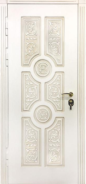 Дверь уличная с терморазрывом №49 — это надежное решение для частных домов и коттеджей, которое обеспечит комфорт и защиту от внешних факторов. С терморазрывом в коробке и полотне, эта дверь исключает проникновение холода, сохраняя тепло в доме и предотвращая появление конденсата. Внешняя и внутренняя отделка выполнена с использованием накладки МДФ, что придает двери привлекательный вид и долговечность, стойкость к механическим повреждениям и атмосферным воздействиям. Ковка, как элемент декора, добавляет изысканности и подчеркивает индивидуальность. Металлическая конструкция с толщиной полотна 1,5 мм и каркасом из профильных труб гарантирует прочность и устойчивость. Уплотнение с тремя контурами магнитного герметика и высокая шумо- и теплоизоляция на основе пенопласта делают дверь идеальной для использования в уличных условиях. Возможность замены замков и добавления стеклопакетов или кованых элементов позволяет индивидуализировать дверное решение под любые потребности. Дверь уличная с терморазрывом №49 от производителя: быстрое изготовление и монтаж в Селятино, индивидуальные размеры, широкий выбор материалов и фурнитуры, официальная гарантия до 10 лет.