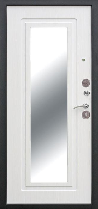 Железная дверь входная в квартиру с зеркалом №68 сочетает в себе надежность металла и практичность продуманного дизайна. Снаружи она покрыта молотковым напылением, известным своей устойчивостью к сколам и царапинам, а также способностью долго сохранять аккуратный внешний вид даже при активной эксплуатации. Внутренняя сторона оформлена накладкой из МДФ, что делает её гармоничным элементом интерьера и добавляет уюта. Встроенное зеркало не только удобно в повседневной жизни, но и визуально расширяет пространство прихожей. Основа конструкции выполнена из профильных труб с листом стали толщиной 2 мм, что гарантирует прочность и долговечность. Два контура уплотнения защищают от сквозняков и уличного шума, а наличие терморазрыва в коробке и полотне препятствует промерзанию в холодное время года. Такая дверь станет надежным и функциональным решением для квартиры, офиса или загородного дома. Железная дверь входная в квартиру с зеркалом №68 от производителя: быстрое изготовление и монтаж в Селятино, индивидуальные размеры, широкий выбор материалов и фурнитуры, официальная гарантия до 10 лет.