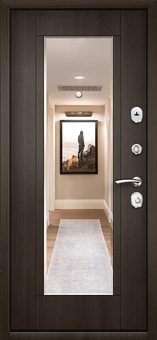 Входная дверь с зеркалом внутри №71 удачно сочетает практичность и надежность, оставаясь при этом стильным элементом интерьера. Она подходит для квартиры, офиса или частного дома, создавая удобство в быту и подчеркивая статус владельца. Внешняя сторона покрыта порошковой окраской, устойчивой к царапинам и перепадам температуры, что гарантирует долговечность и сохранение привлекательного вида. Внутри установлена накладка из МДФ, которая придает поверхности уют и делает её гармоничной частью интерьера. Зеркало на внутренней стороне экономит пространство прихожей и добавляет ей визуальной глубины. Каркас из профильной трубы с листом стали толщиной 2 мм и ребрами жесткости обеспечивает прочность и устойчивость ко взлому. Два контура уплотнителей создают дополнительную защиту от сквозняков и пыли, а терморазрыв в коробке и полотне предотвращает промерзание зимой. Для безопасности предусмотрены два замка российского производства с ригельными системами, при желании возможна замена на замки премиальных марок или установка умных электронных решений. Дверь входная с зеркалом внутри №71 от производителя: быстрое изготовление и монтаж в Селятино, индивидуальные размеры, широкий выбор материалов и фурнитуры, официальная гарантия до 10 лет.