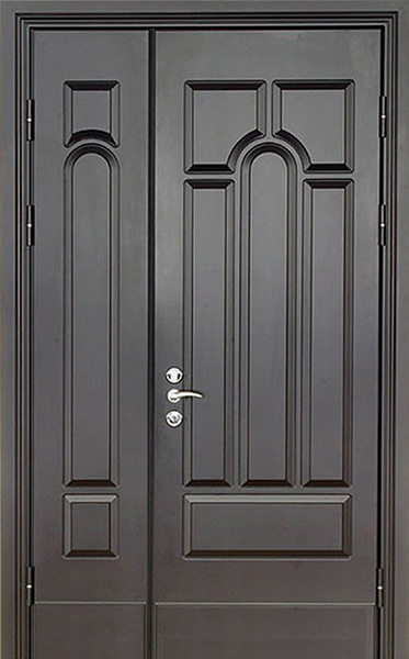 Металлическая двухстворчатая дверь для дома цвета графит №27 – это стильное и надежное решение для вашего жилья. Внешняя и внутренняя отделка выполнены из МДФ, что придает двери изысканный вид и увеличивает её стойкость к механическим повреждениям. Цвет графит придаёт двери современный и элегантный оттенок, который легко впишется в интерьер как частных домов, так и современных офисов. Металлическая двухстворчатая дверь для дома цвета графит №27 от производителя: быстрое изготовление и монтаж в Селятино, индивидуальные размеры, широкий выбор материалов и фурнитуры, официальная гарантия до 10 лет.