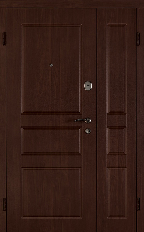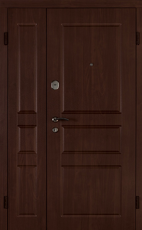 Коричневая входная полуторная дверь с филенчатой створкой №4 – это надежное и стильное решение для вашего дома или офиса. Внешняя и внутренняя отделка из МДФ с ПВХ обеспечивает долговечность и устойчивость к повреждениям, сохраняя при этом элегантный внешний вид. Прочные материалы конструкции, такие как профильная труба 50х25 мм и лист металла толщиной 2 мм, гарантируют стабильность и безопасность. Ребра жесткости из профильных труб 40х25 мм усиливают дверное полотно, а уплотнение с двумя контурами надежно защищает от внешних факторов. Несмотря на отсутствие терморазрыва, в двери реализованы терморазрывы в коробке и полотне, что помогает улучшить теплоизоляцию. Возможность выбора дополнительных опций, таких как шумоизоляция, делает эту дверь универсальной для различных условий эксплуатации. Коричневая входная полуторная дверь с филенчатой створкой №4 от производителя: быстрое изготовление и монтаж в Селятино, индивидуальные размеры, широкий выбор материалов и фурнитуры, официальная гарантия до 10 лет.