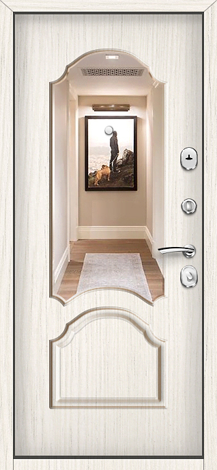 Входная дверь с зеркальной вставкой для прихожей №21 — это не просто надежное, но и стильное решение для частных домов, квартир и офисов. Благодаря прочному каркасу из профильной трубы 50х25 мм и металлическому полотну толщиной 2 мм, дверь гарантирует долговечность и высокую степень защиты. Внешняя отделка с порошковым напылением не только добавляет эстетичности, но и защищает от атмосферных воздействий, а внутренняя отделка из панелей МДФ ПВХ устойчива к механическим повреждениям. Вставка зеркала на двери добавляет современности и практичности, расширяя пространство прихожей. Два контура резинового уплотнителя эффективно предотвращают попадание холода и шума. Дверь оборудована двумя замками, что повышает безопасность. Также можно заменить замки на более современные модели и добавить опции, такие как стеклопакет или видеодомофон, что делает эту модель еще более универсальной. Входная дверь с зеркальной вставкой для прихожей №21 от производителя: быстрое изготовление и монтаж в Селятино, индивидуальные размеры, широкий выбор материалов и фурнитуры, официальная гарантия до 10 лет.