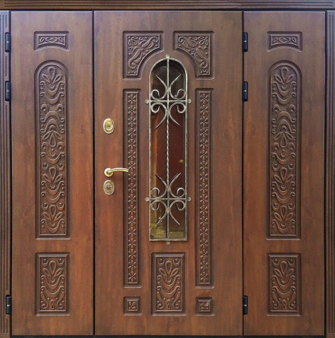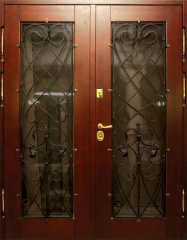 Красивая шпонированная дверь с надежной фурнитурой и ковкой "лоза" №33