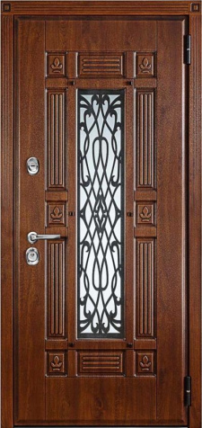 Сочетание надежной конструкции и декоративной выразительности делает входную металлическую дверь с ковкой и стеклом №20 удачным выбором для частных домов и коттеджей. Полотно собрано из профильных труб и усилено стальным листом толщиной 2 мм, дополнено ребрами жесткости и блокираторами, что обеспечивает прочность и устойчивость к нагрузкам. Два контура уплотнителя защищают от сквозняков и влаги, а по желанию доступна дополнительная шумо- и теплоизоляция. Отделка выполнена панелями МДФ ПВХ, стойкими к механическим повреждениям и перепадам температуры, благодаря чему дверь долго сохраняет свежий вид без потери эстетики. Особый акцент создают стеклянные вставки с коваными элементами, придающие входной группе парадность и индивидуальность. Такая дверь не только надежна в эксплуатации, но и подчеркивает стиль всего фасада. Входная металлическая дверь с ковкой и стеклом №20 от производителя: быстрое изготовление и монтаж в Селятино, индивидуальные размеры, широкий выбор материалов и фурнитуры, официальная гарантия до 10 лет.