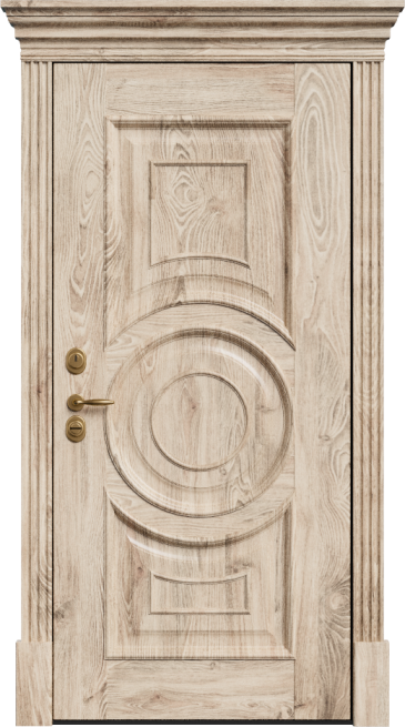 Входная дверь со стеклопакетом и патиной для загородного дома белая №29