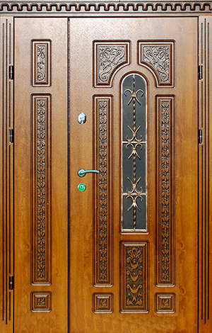 Эксклюзивная высокая входная дверь с железным отбойником №36
