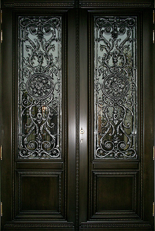 Дверь входная с ковкой и стеклопакетом №28
