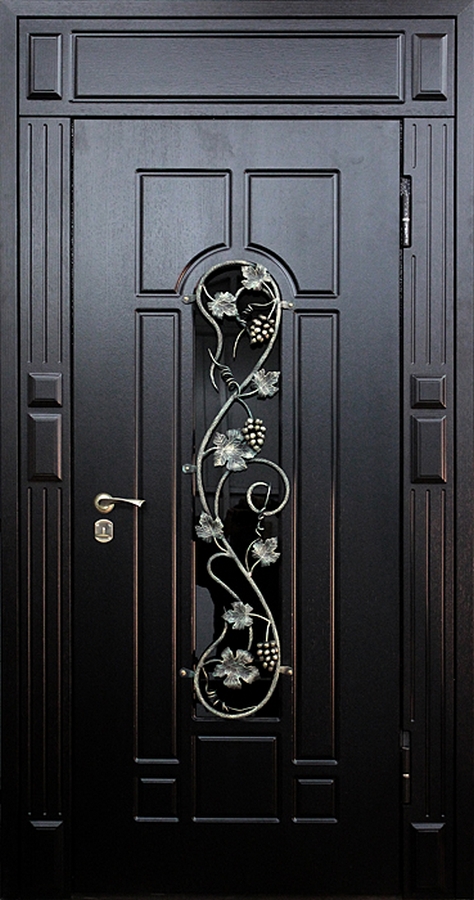Входная дверь в дом со стеклом ковка №36