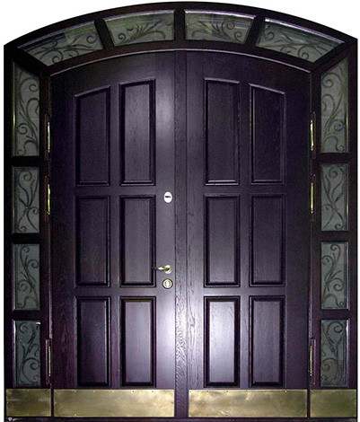 Дверь входная со стеклом в частный дом №382 сочетает массивность металла и изящество натурального дерева, создавая надежный и одновременно представительный парадный вход. Каркас и полотно выполнены из стальной профильной трубы с листом металла толщиной 2 мм и усилены ребрами жесткости, что обеспечивает долговечность и прочность конструкции. Облицовка массивом дерева придает двери благородный внешний вид, устойчивый к царапинам и воздействию времени, а также гармонично вписывается в архитектуру частного дома или коттеджа. Вставка из стекла делает интерьер светлее, подчеркивает индивидуальность фасада и визуально облегчает крупное полотно. Два контура уплотнителей защищают от сквозняков и влаги, а встроенные блокираторы повышают надежность. Такая дверь становится не просто функциональным элементом, а настоящим украшением высокого входа. Высокая входная дверь со стеклом в частный дом №15 от производителя: быстрое изготовление и монтаж в Селятино, индивидуальные размеры, широкий выбор материалов и фурнитуры, официальная гарантия до 10 лет.