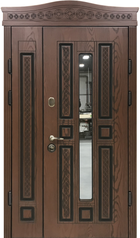 Эксклюзивная высокая входная дверь с железным отбойником №36 — это образец элегантности и функциональности, который идеально впишется в любой частный дом или коттедж. Изготовленная из массива дерева, она будет долго сохранять свой привлекательный внешний вид и устойчивость к внешним воздействиям. Прочная конструкция из профильных труб и листа металла толщиной 2 мм, усиленная ребрами жесткости, гарантирует надежность и долговечность. Терморазрыв в коробке и полотне помогает минимизировать теплопотери и защищает от перепадов температуры. Дверь оснащена высококачественными замками, что обеспечивает высокий уровень безопасности. Железный отбойник добавляет двери не только дополнительную защиту, но и стильный элемент дизайна. Эксклюзивная высокая входная дверь с железным отбойником №36 от производителя: быстрое изготовление и монтаж в Селятино, индивидуальные размеры, широкий выбор материалов и фурнитуры, официальная гарантия до 10 лет.